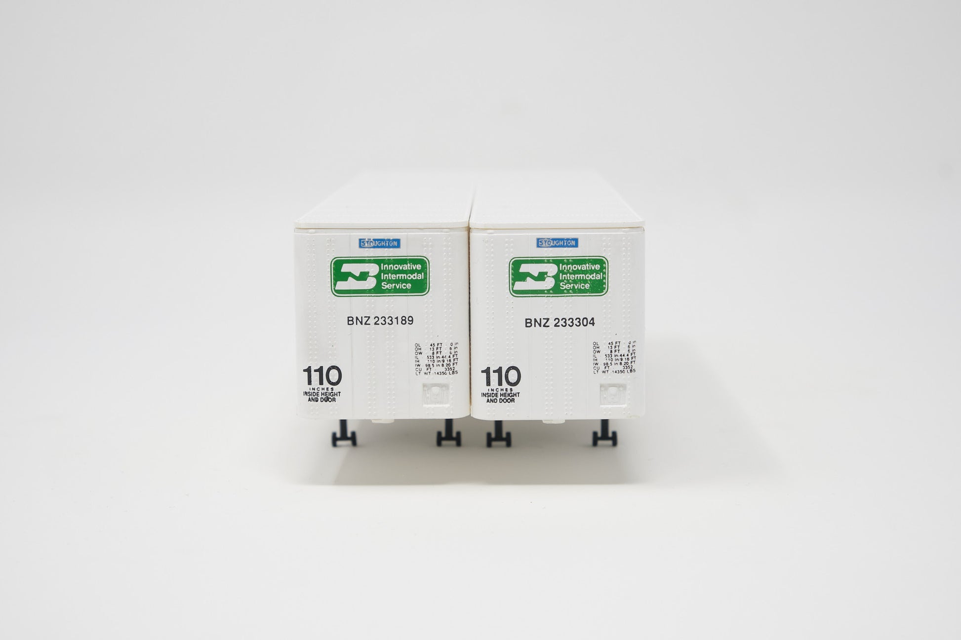 Each trailer features finely detailed molded bodies, accurate Burlington Northern graphics, and realistic wheels and landing gear. Perfect for use on flatcars, yard scenes, or modern freight terminals. Whether you’re modeling a transcontinental freight route or a busy intermodal yard, these trailers add realism and vintage charm to any era-specific layout.