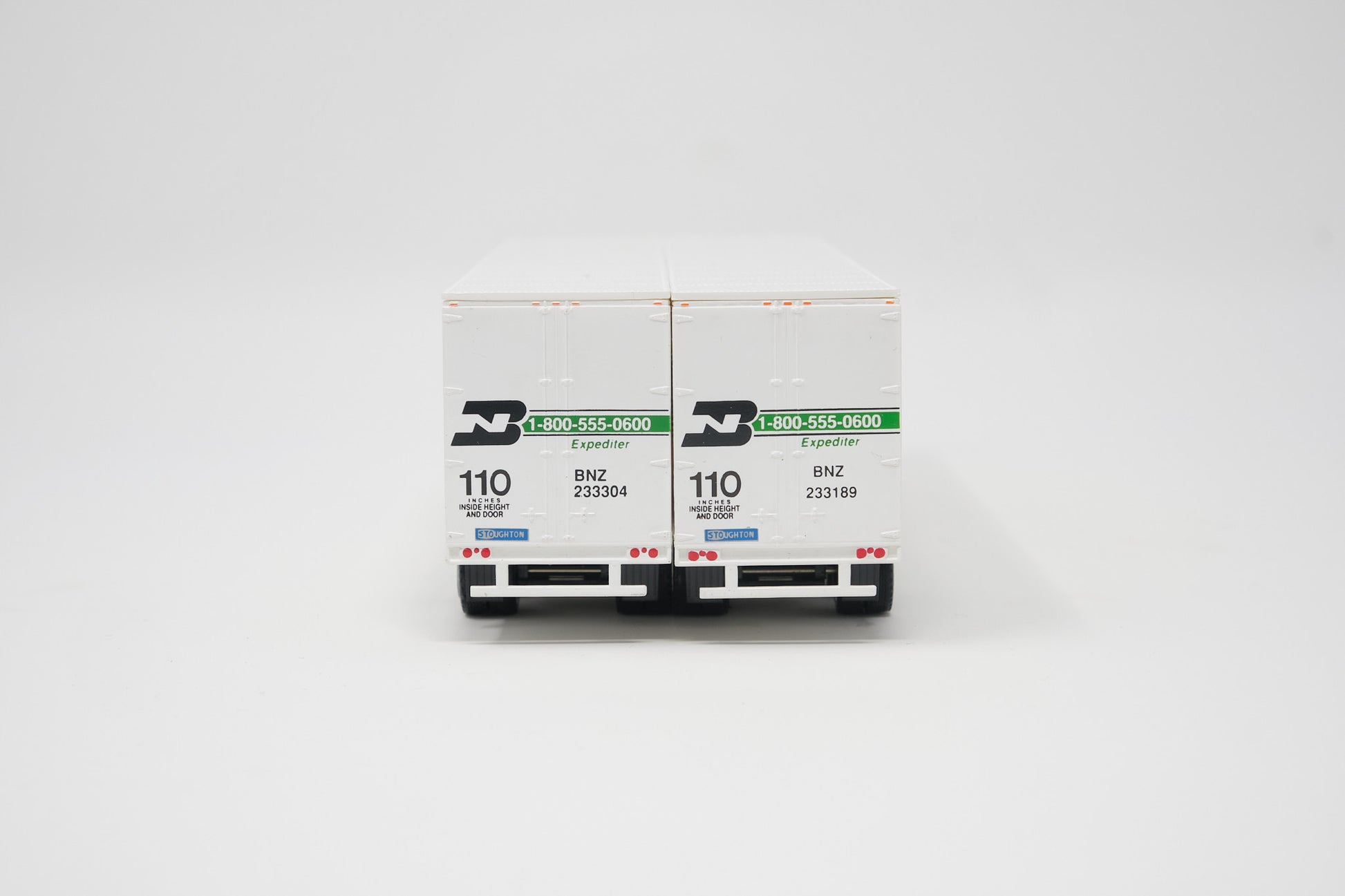 Add authentic intermodal realism to your HO scale layout with this 2-pack of Burlington Northern “Expediter” 45-foot trailers. These high-quality models replicate the green-and-white BN trailers used during the height of the trailer-on-flatcar (TOFC) era, often seen riding piggyback on flatcars across the BN freight system in the 1970s through the 1990s.