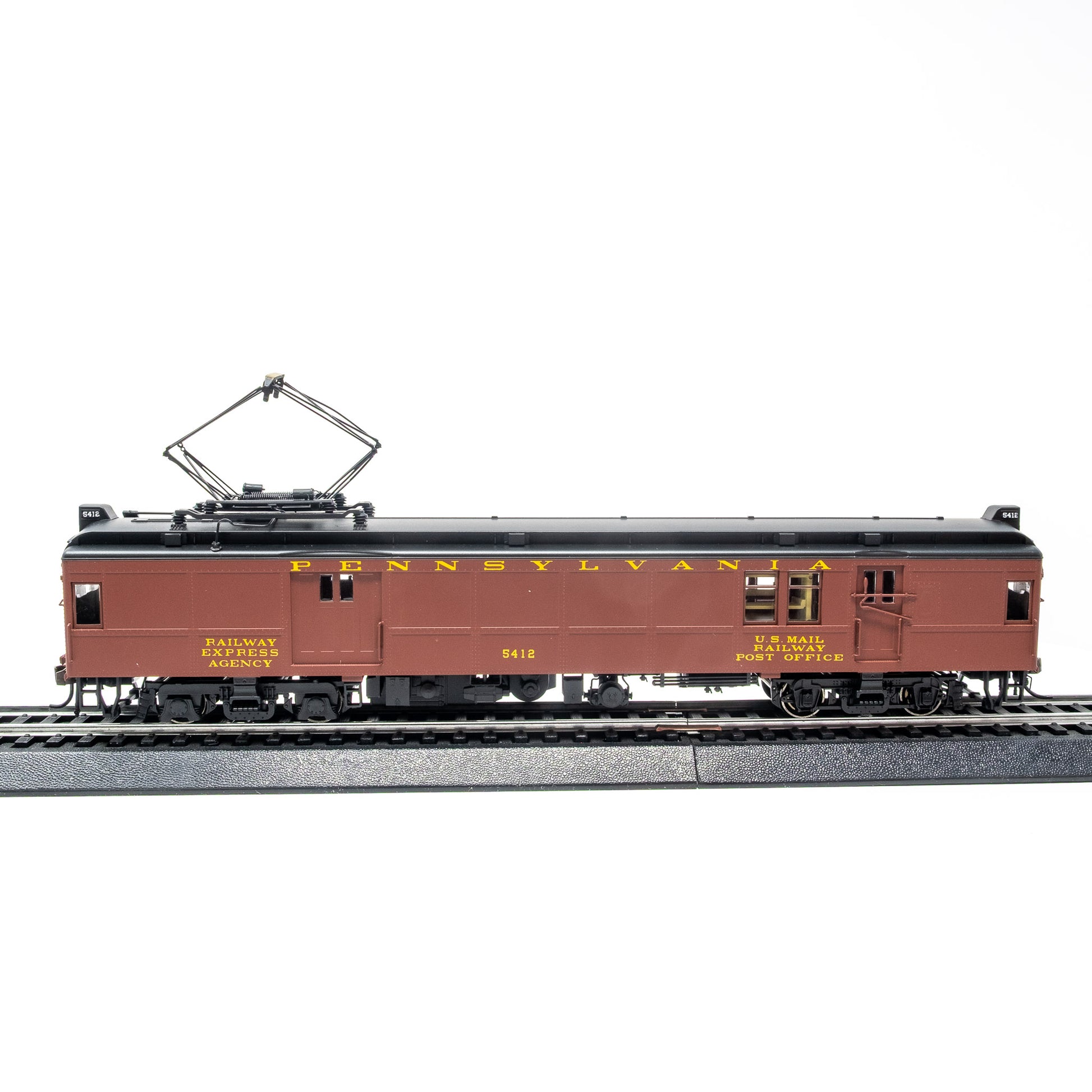 HO Scale Pennsylvania RR MUmP54 Baggage-Mail Car #5412 – Non-Powered, Pantograph Equipped – Tuscan Red (Post-War)