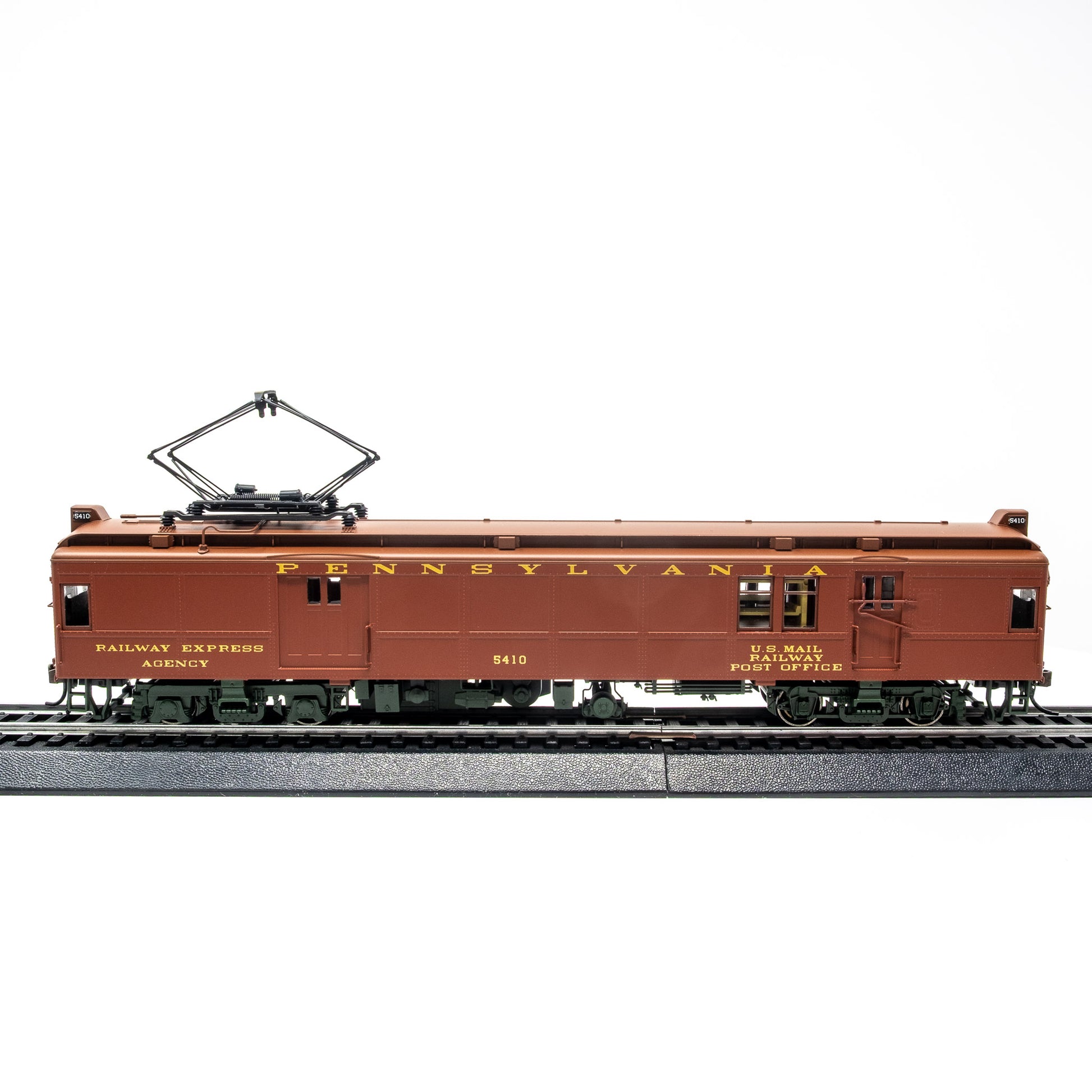 HO Scale Pennsylvania RR MUmP54 Baggage-Mail Car #5410 – Non-Powered, Pantograph Equipped – Tuscan Red (Pre-War)