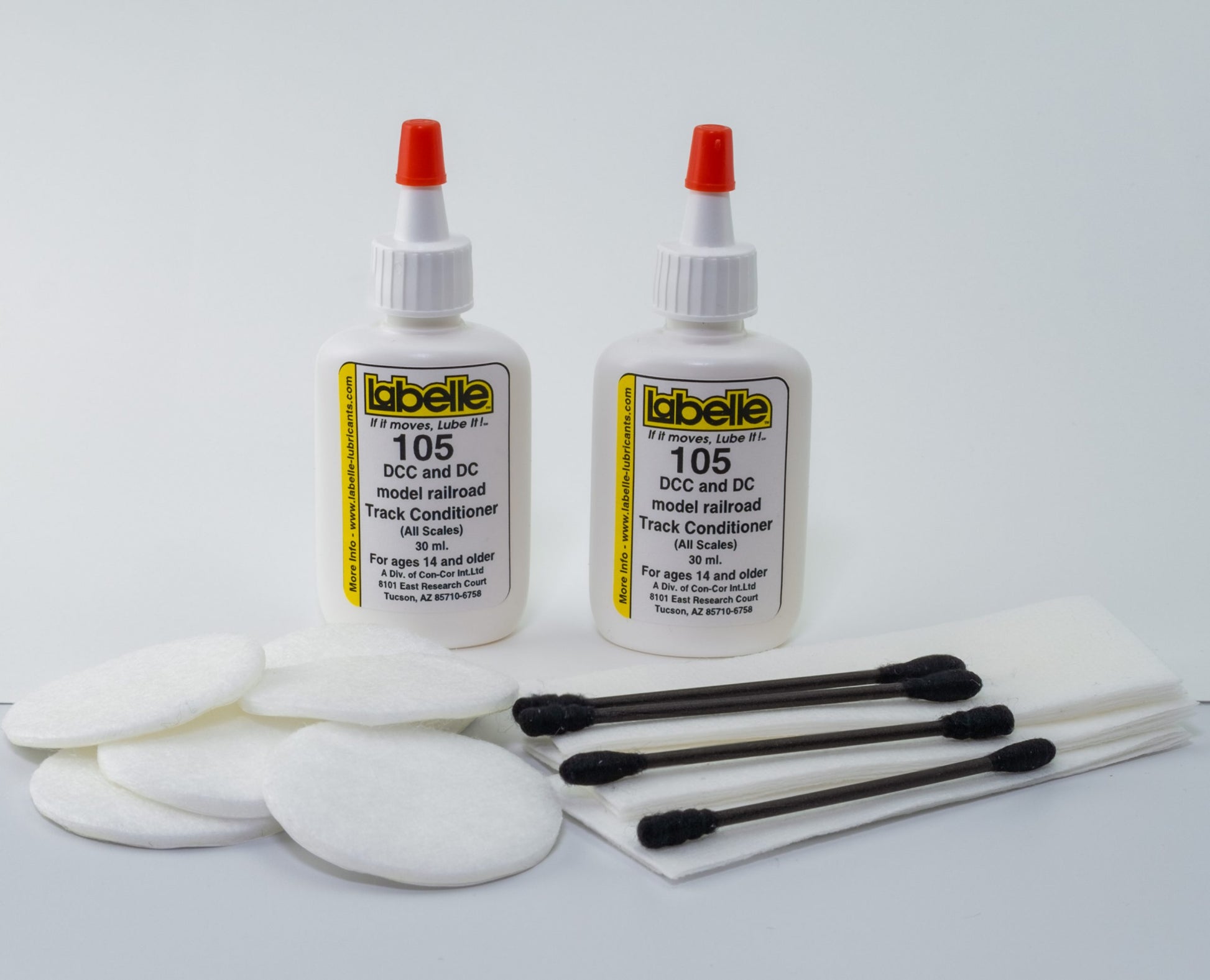 Labelle #105 Model Track Cleaner and Conditioner – 2-Pack Cleaning Kit is a complete maintenance solution designed to clean and enhance the electrical performance of model train tracks and slot car systems. This kit includes two bottles of Labelle #105 cleaning oil and comes with applicators to help remove oxidation, dirt, and grime from rails, wheels, and electrical contacts—without harming delicate components.
