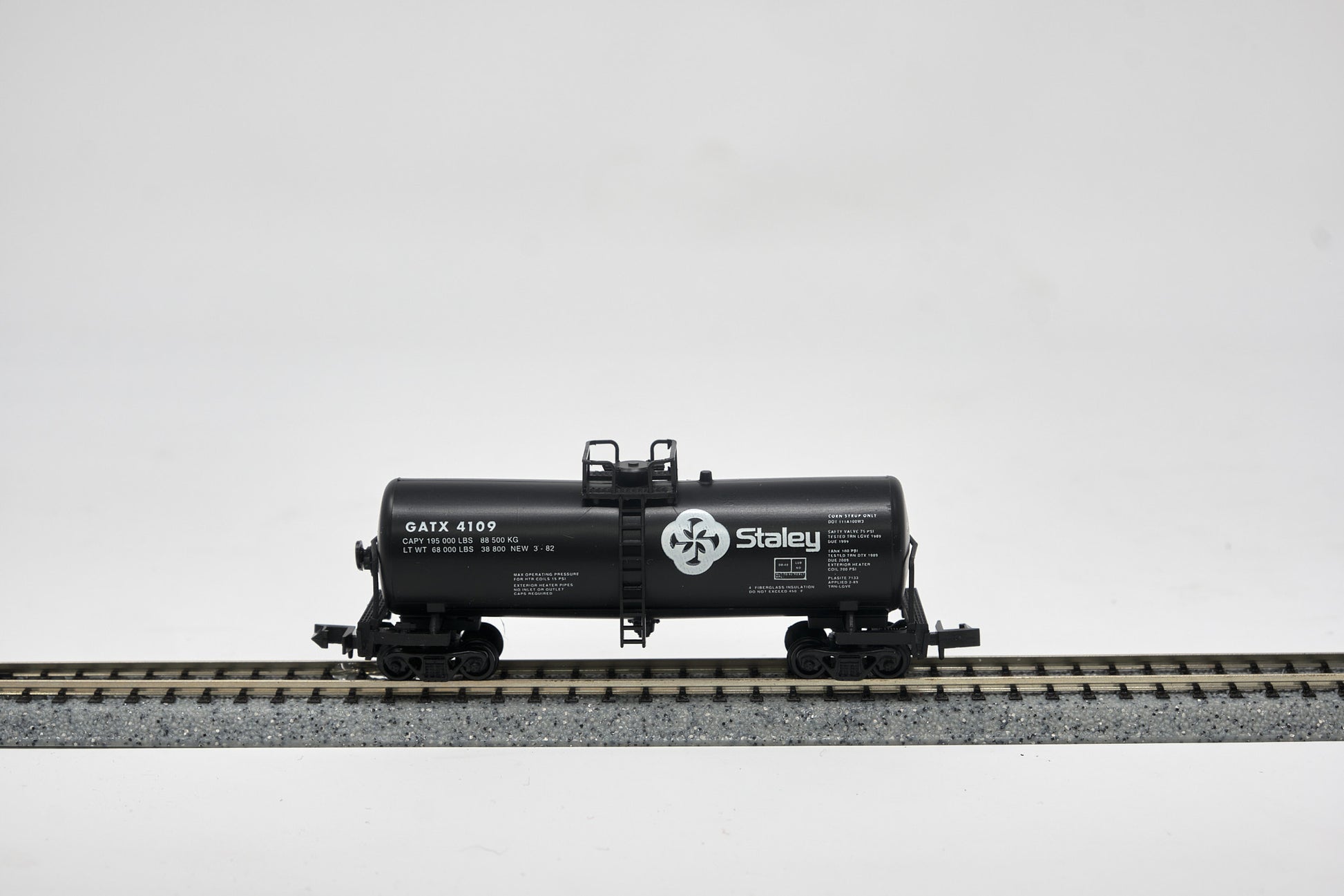 Bring a piece of industrial history to your N scale railroad with this 40FT Tank Car featuring the iconic "Staley" branding. Representing the A.E. Staley Manufacturing Company, these tank cars were vital for transporting various liquid commodities across the nation.